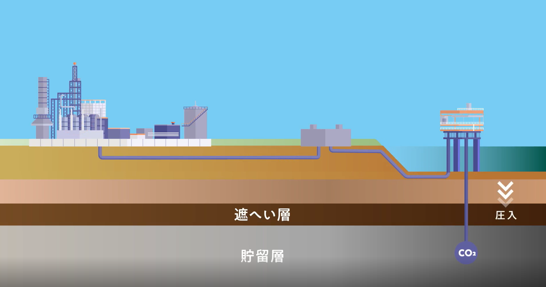 製鉄所や工場等から発生する二酸化炭素を分離・回収し、貯留に適した地域まで輸送したのち、地下に長期間かつ安定的に貯留する技術です。